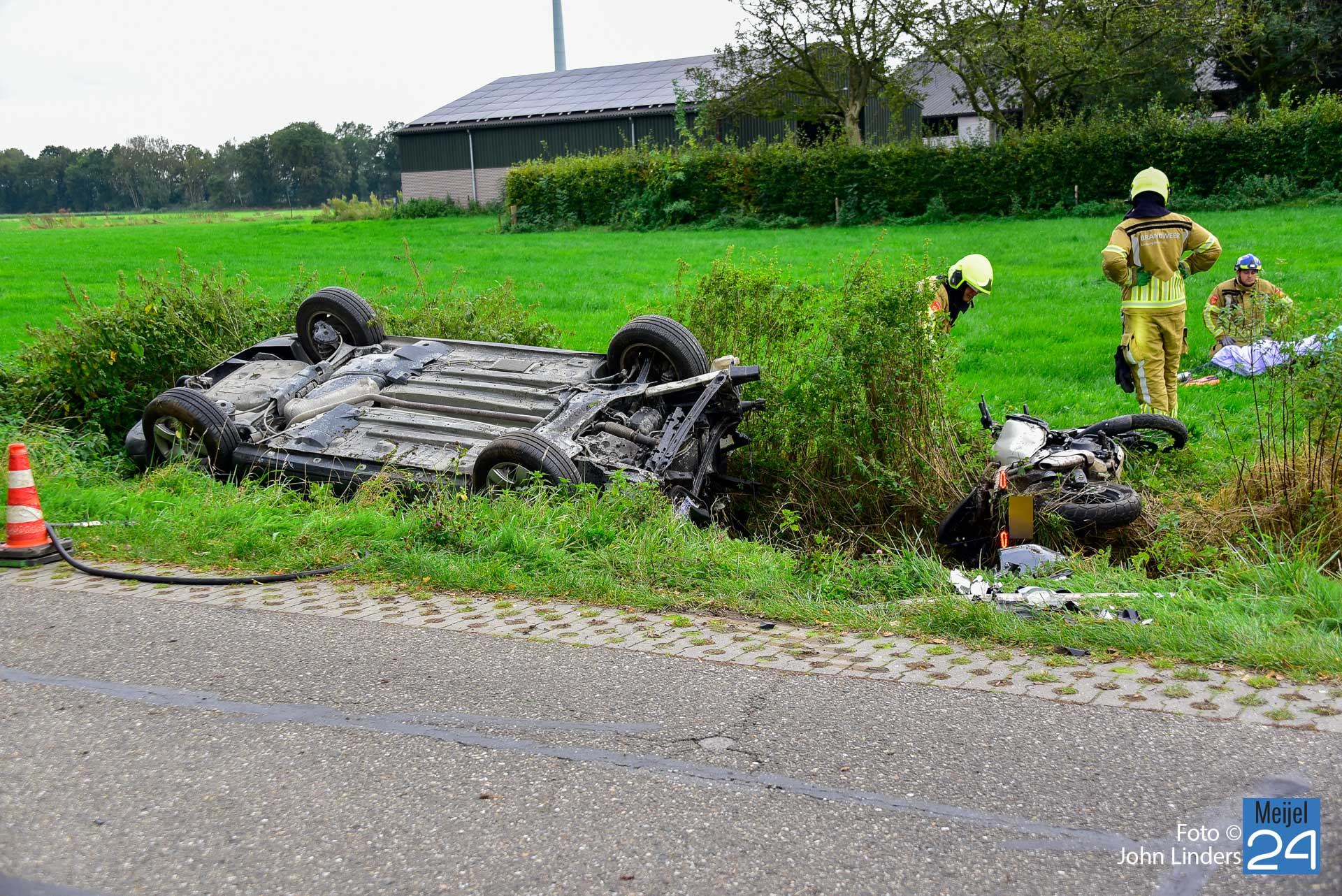 Op de kruising Melkweg, Karissendijk en Haambergweg waren een personenauto en motor door een voorrangsfout met elkaar in botsing gekomen. De motorrijder werd gelanceerd en kwam verderop in een weiland terecht. De personenauto belande op de kop in de sloot.