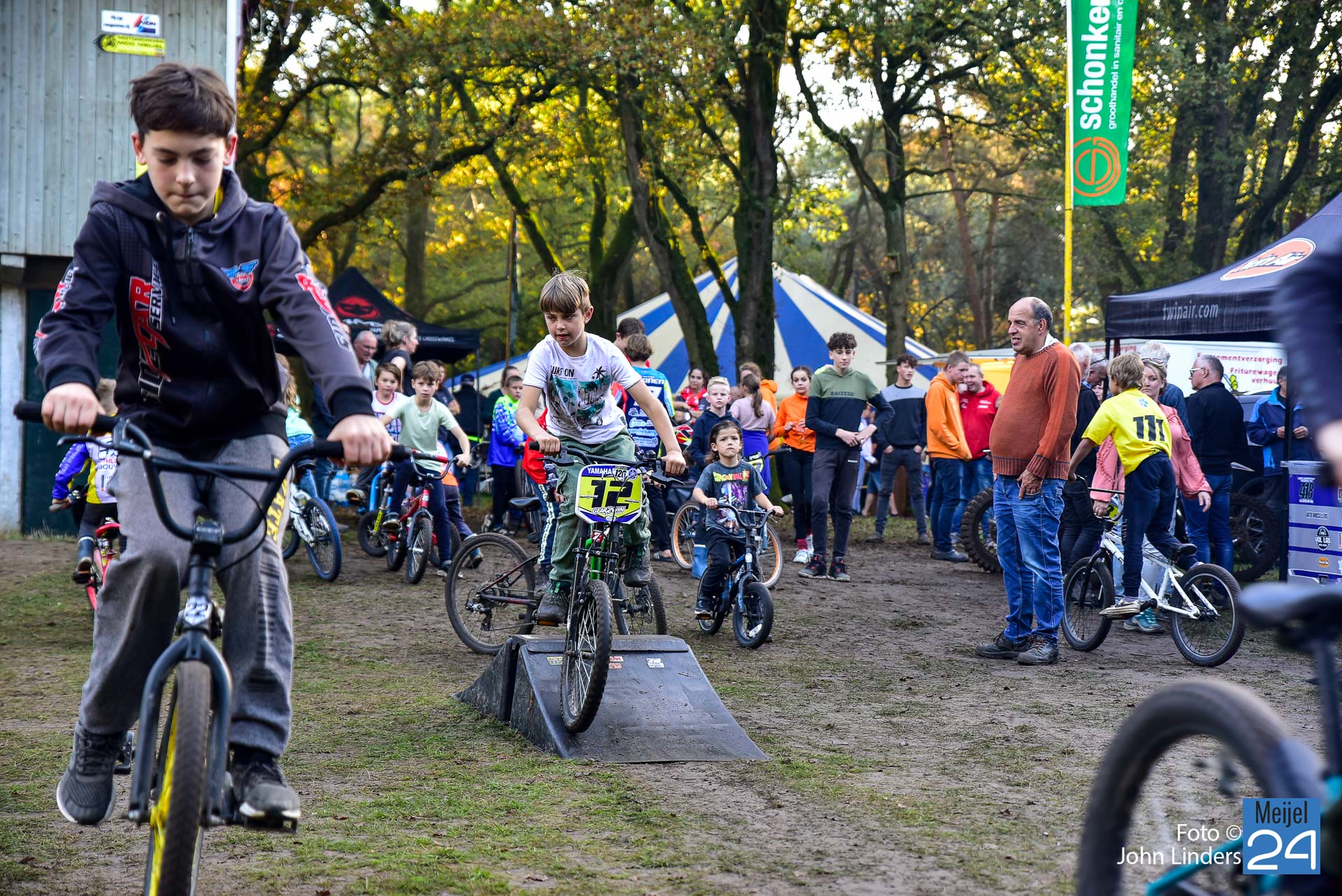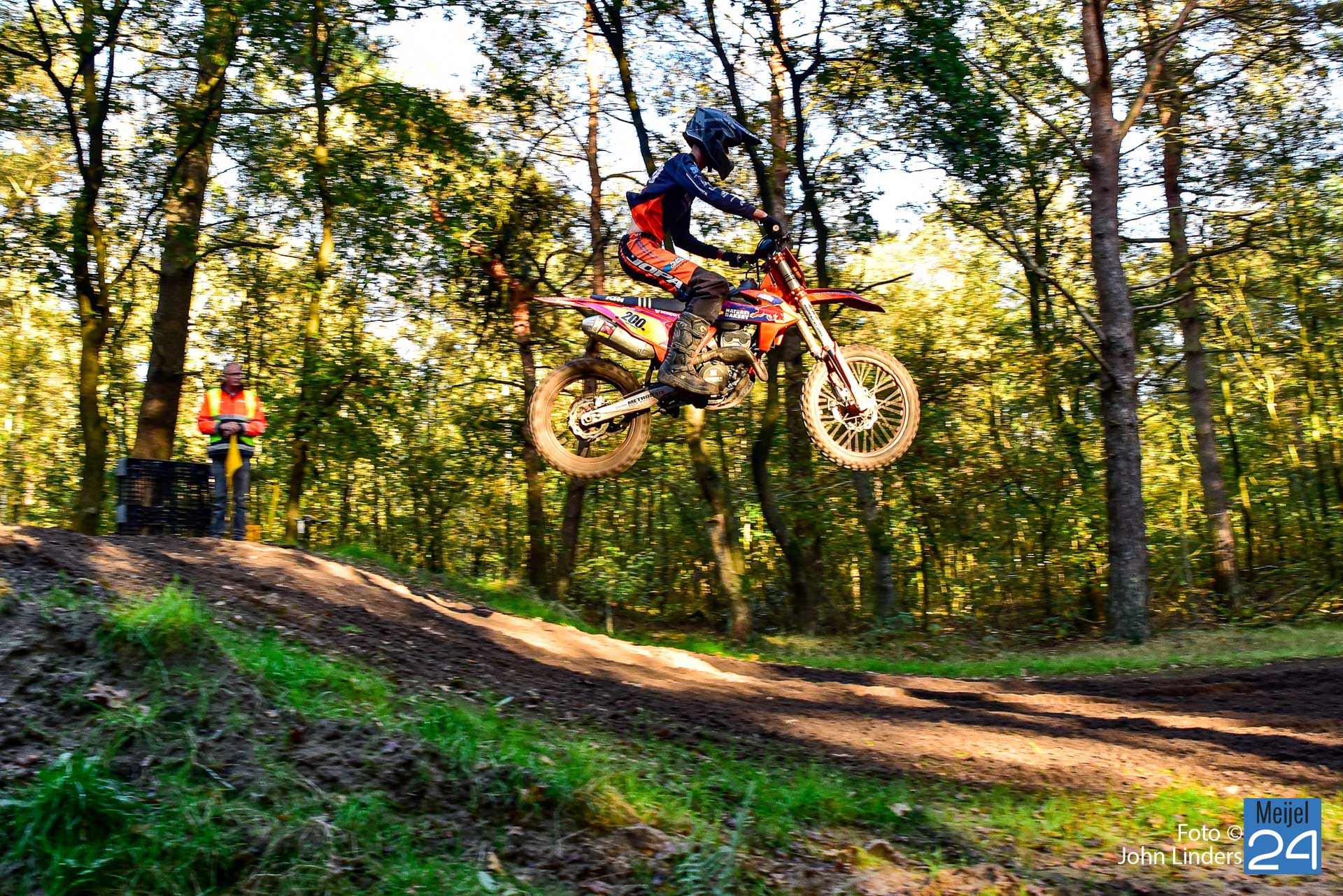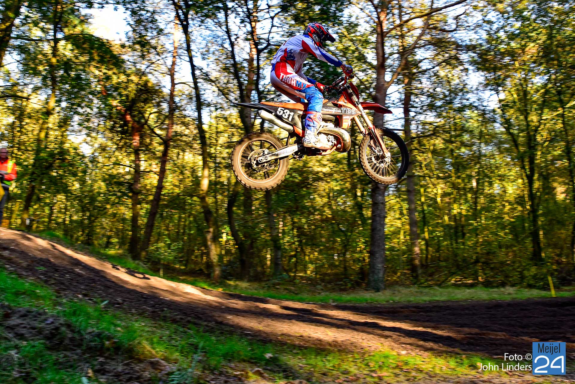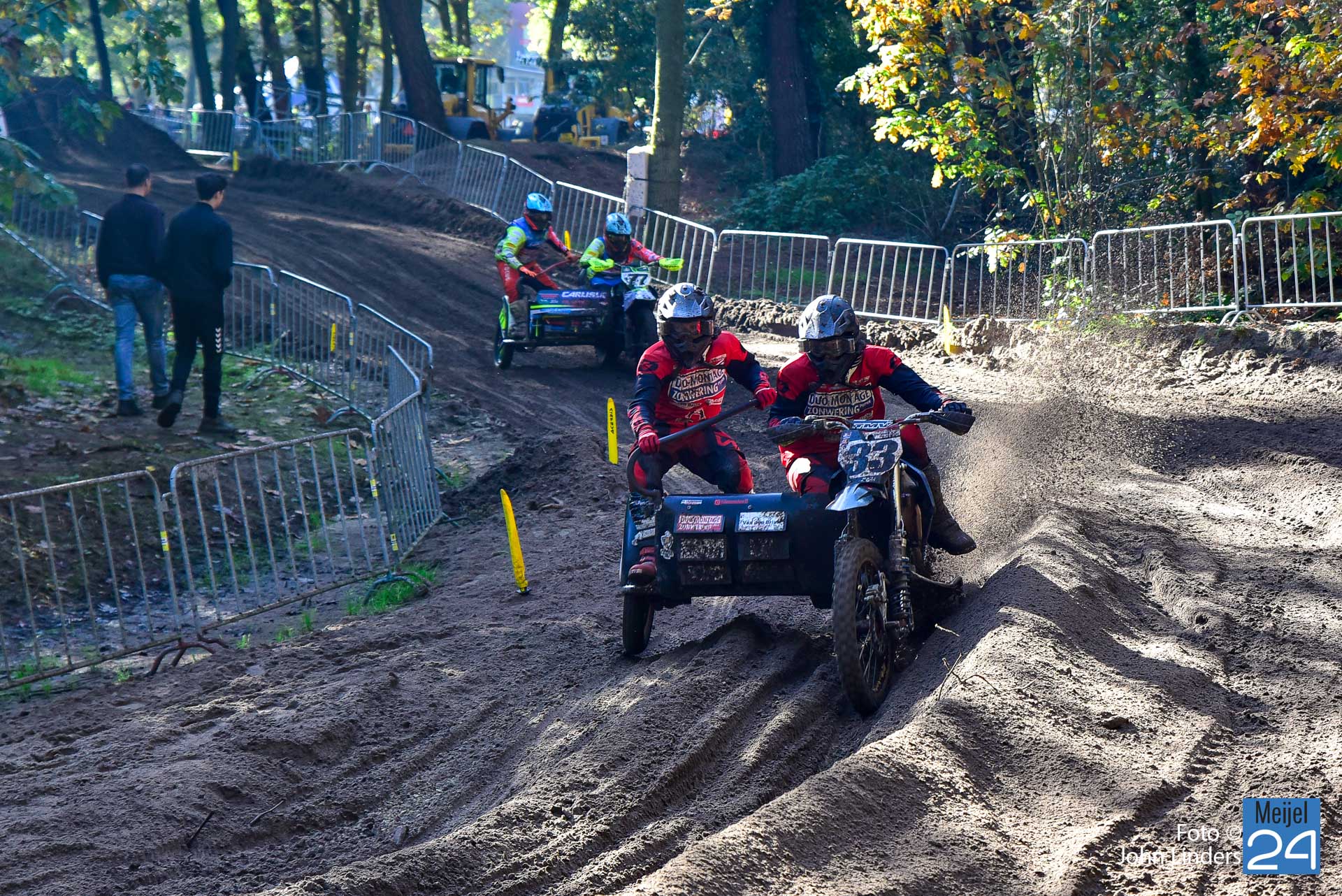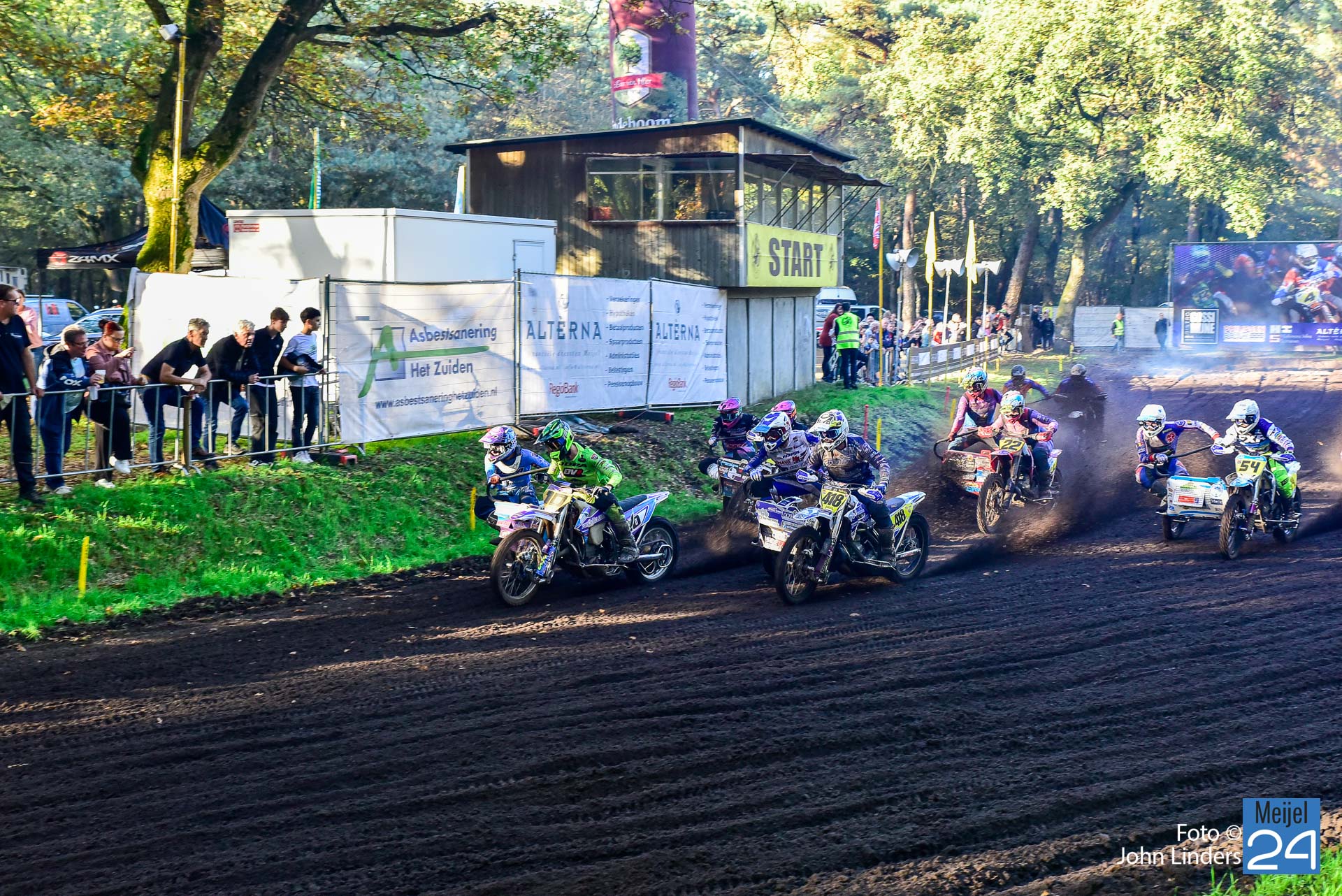 Tijdens de motorcrosswedstrijden op het circuit De Vossenberg in Meijel was er direct na de start van de 2e manche ‘Open Clubklasse Solo‘ een flinke valpartij.