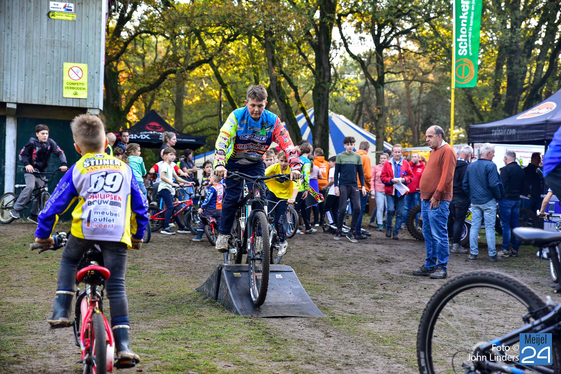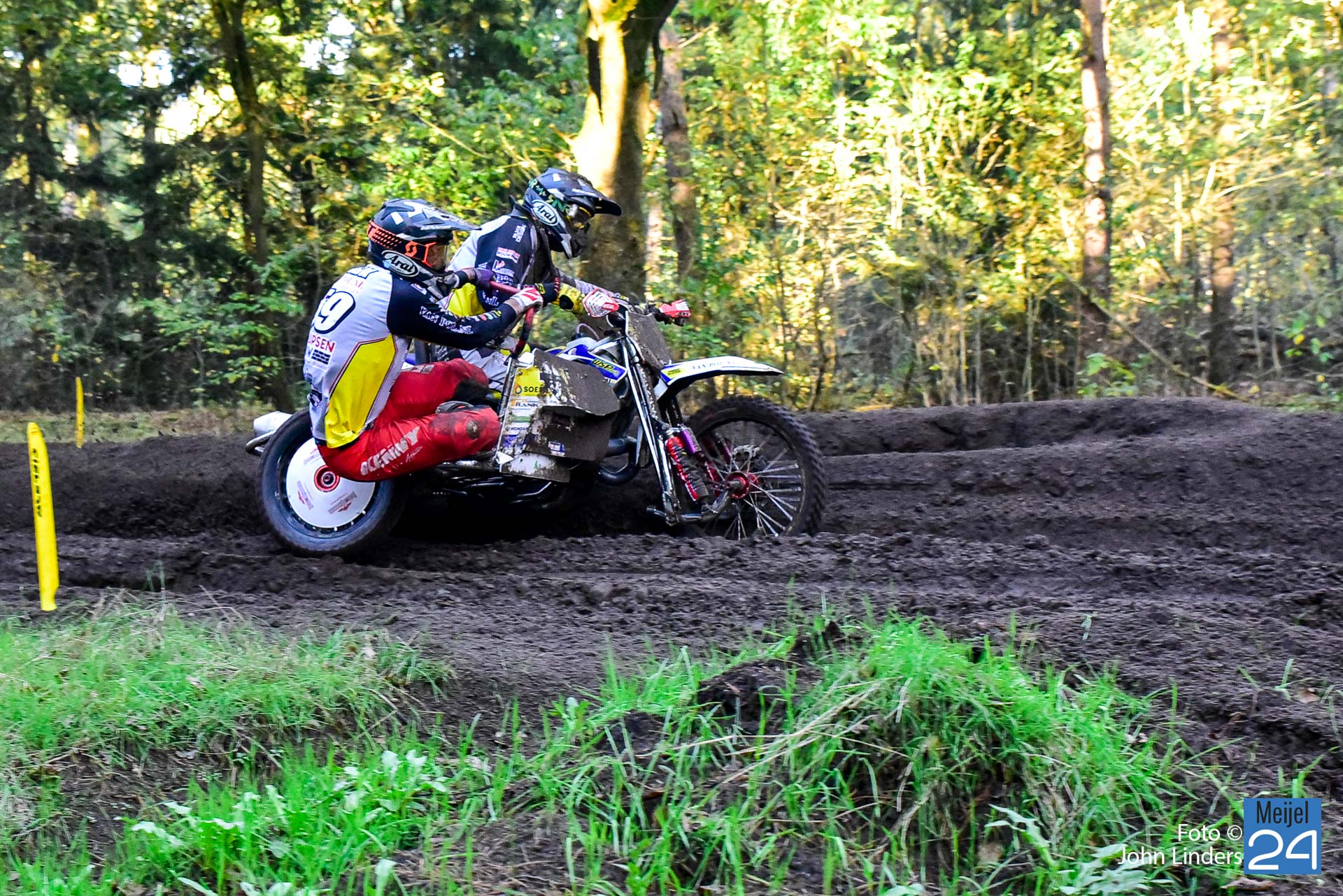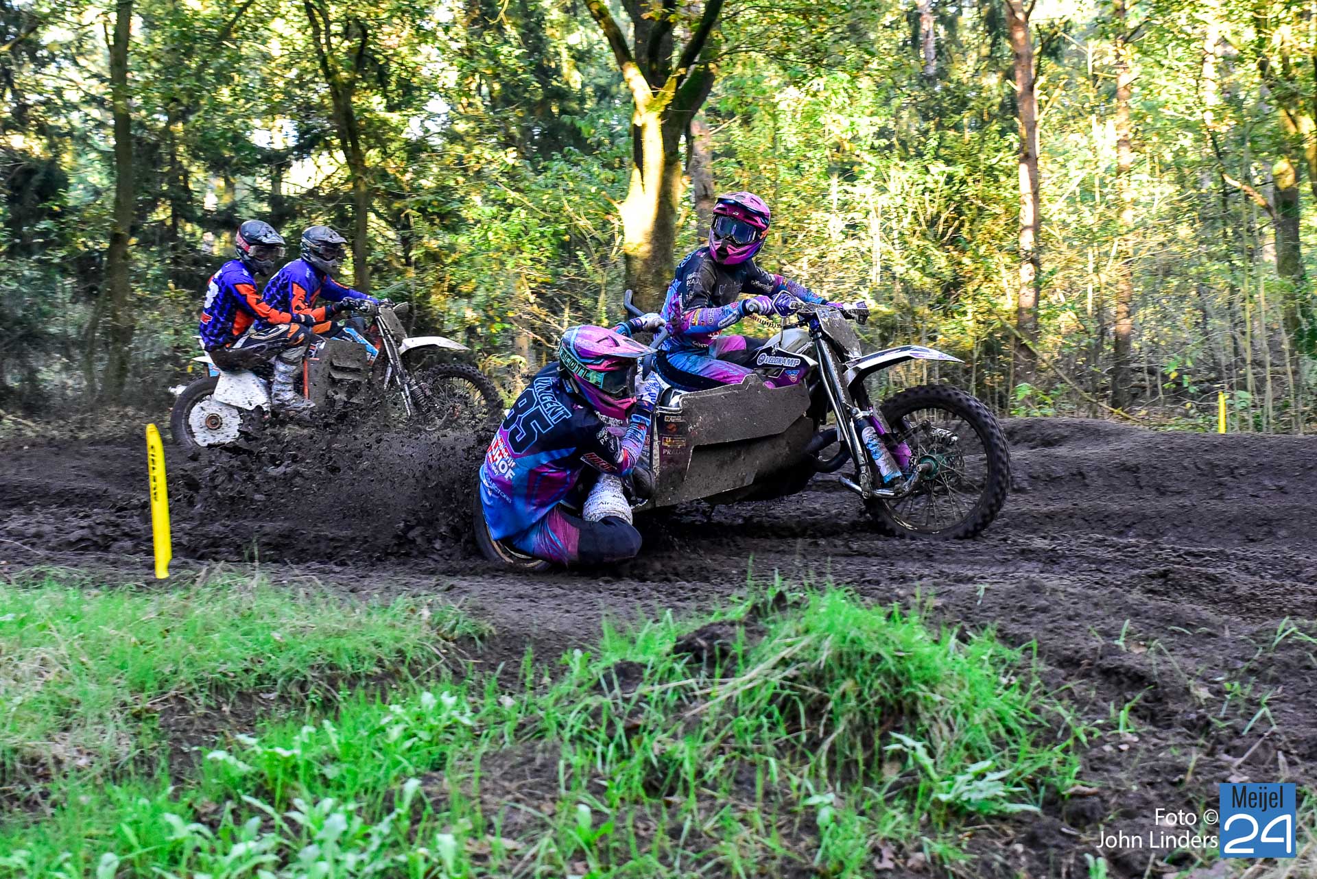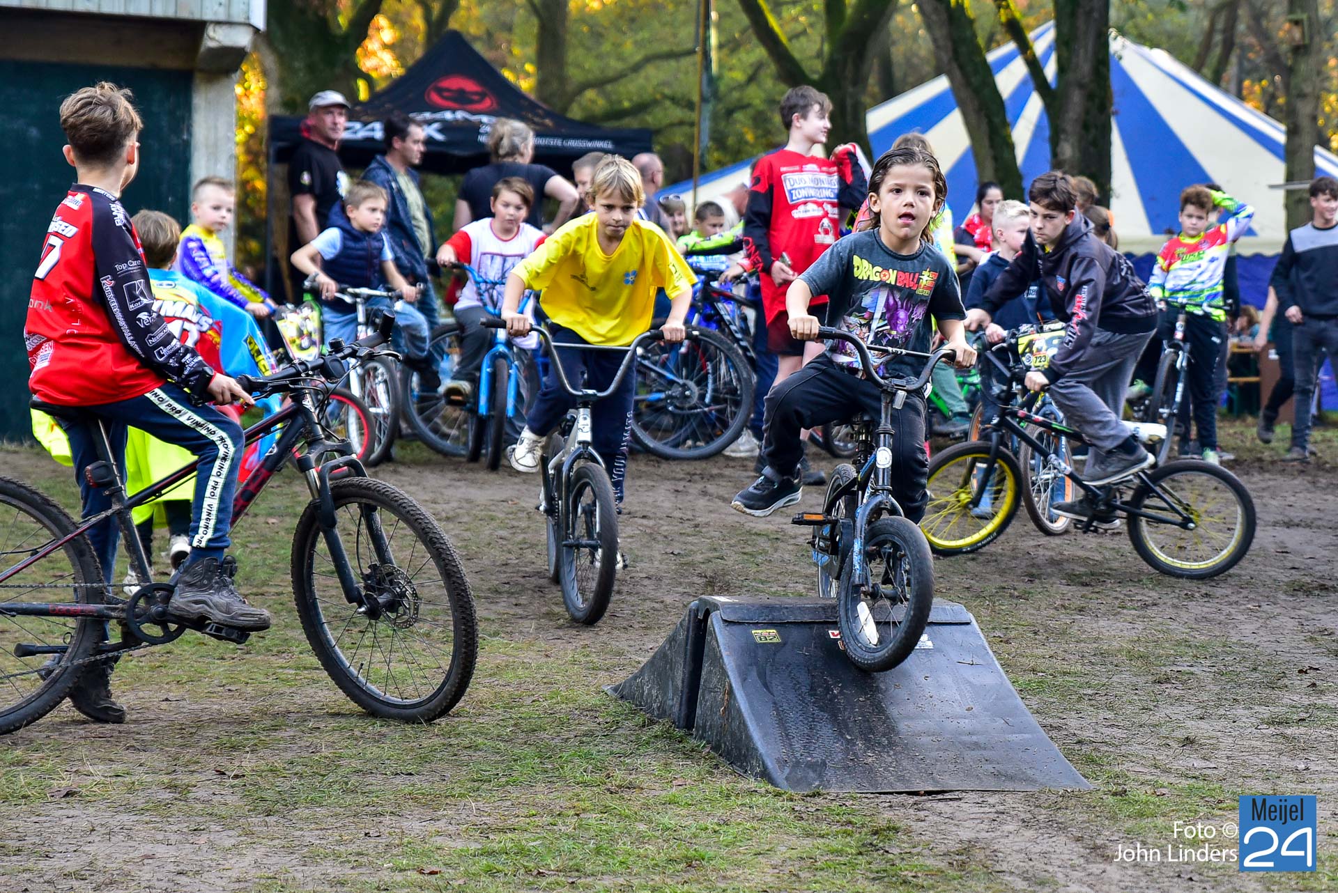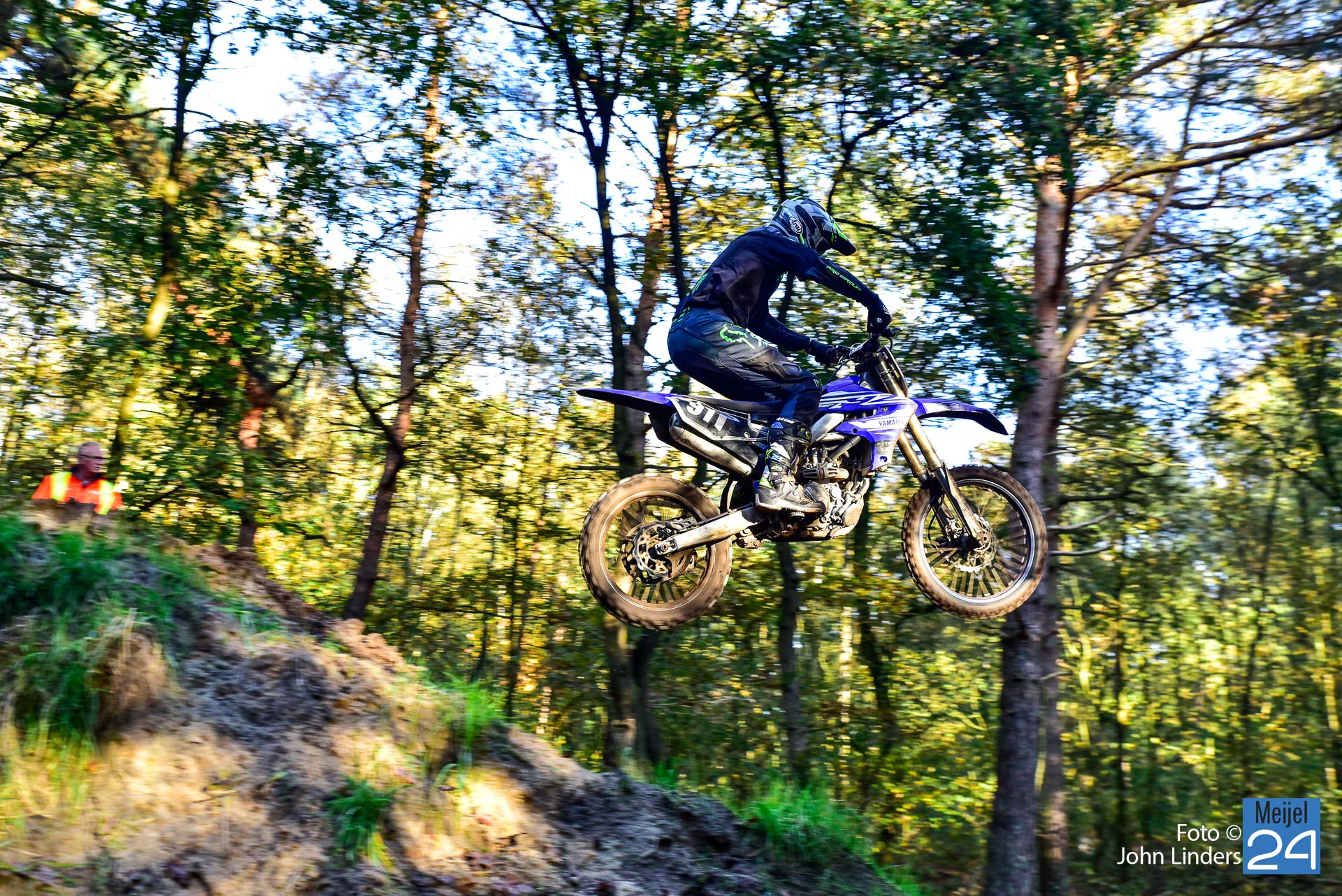 Tijdens de motorcrosswedstrijden op het circuit De Vossenberg in Meijel was er direct na de start van de 2e manche ‘Open Clubklasse Solo‘ een flinke valpartij.