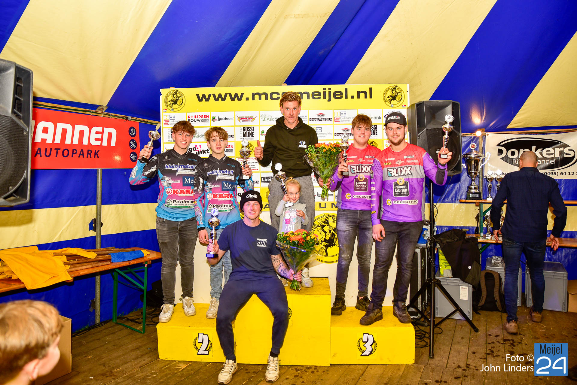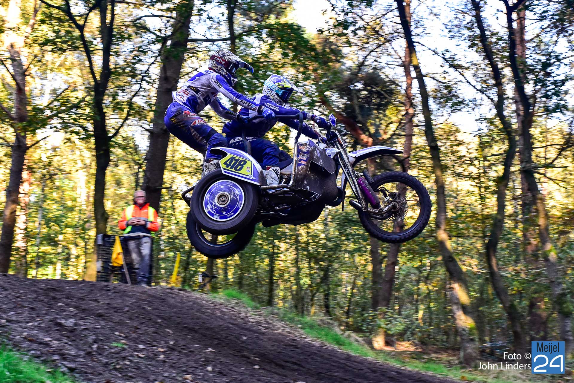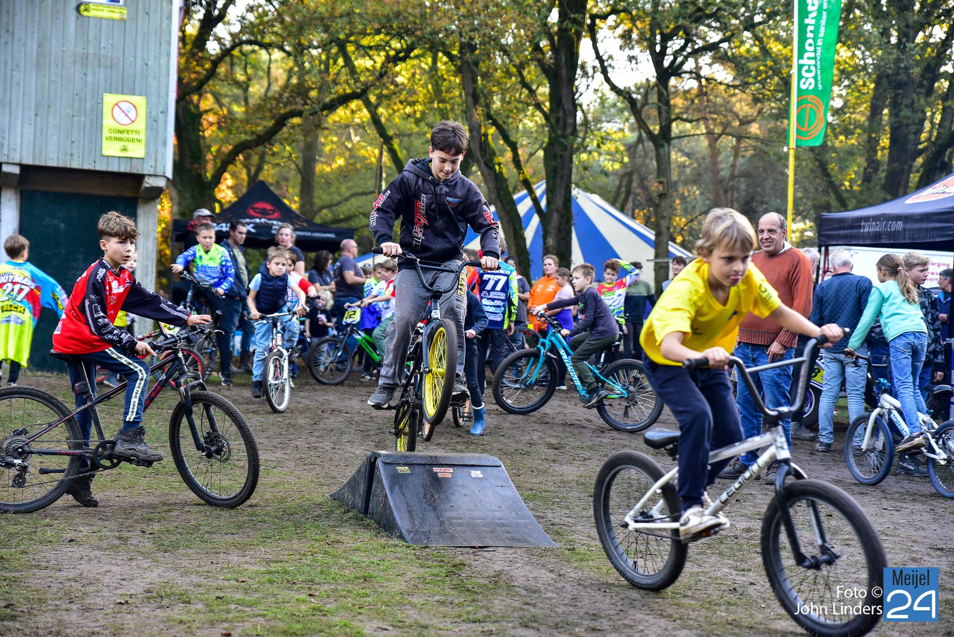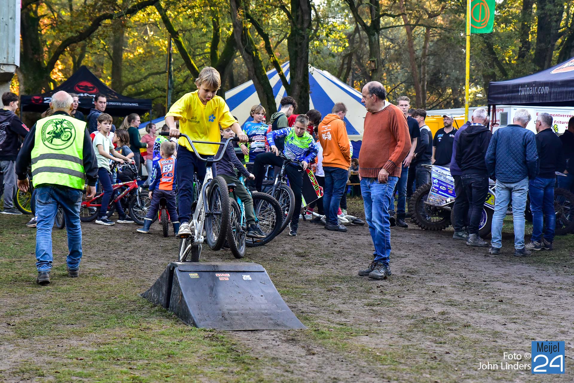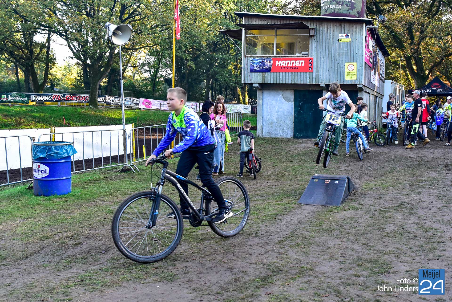 Tijdens de motorcrosswedstrijden op het circuit De Vossenberg in Meijel was er direct na de start van de 2e manche ‘Open Clubklasse Solo‘ een flinke valpartij.