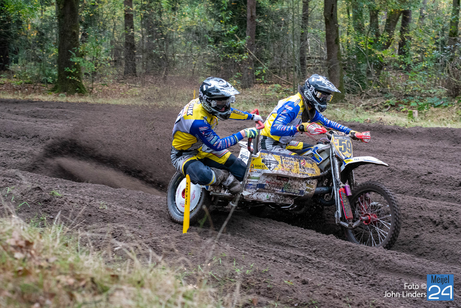 Bij de zijspannen konden nog geen Nederlands Kampioenen worden gehuldigd. Grand Prixcoureur en de trots van MCC Meijel -Stephan Wijers -won met bakkenist Han van Hal beide manches met overmacht.