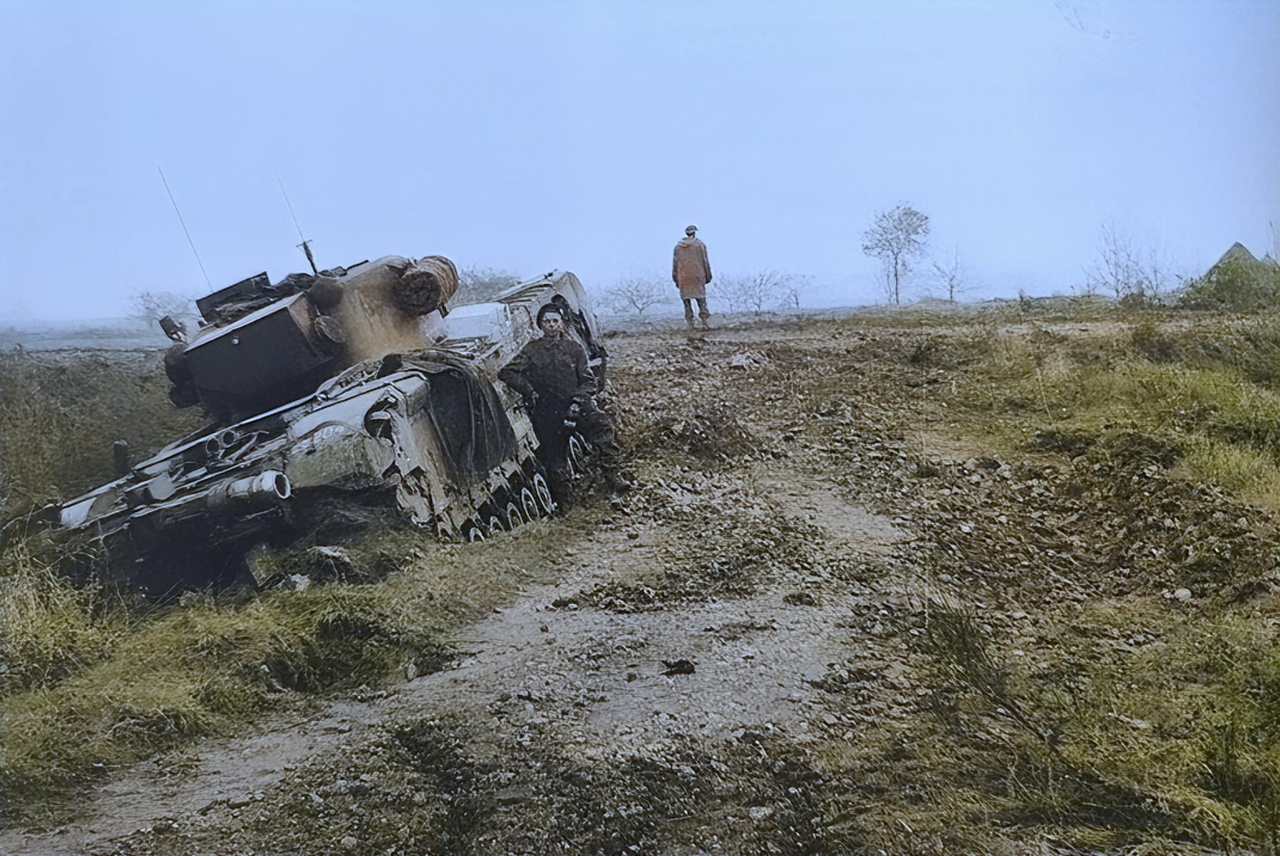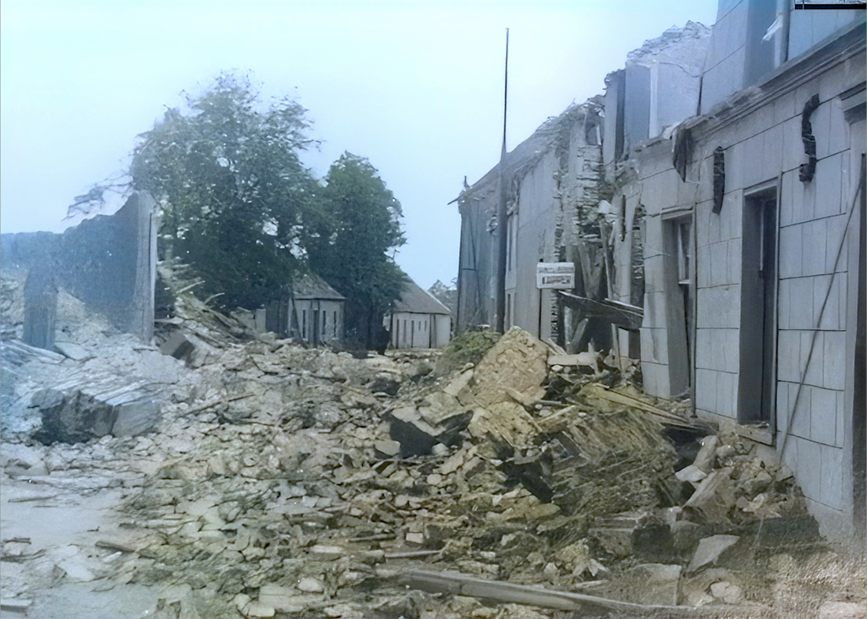 Wat er daarna was te zien in en rond Meijel was werkelijk onbeschrijflijk. Het leek hier wel een maanlandschap: overal dood vee, kapotte huizen, uitgebrande en vaak nog rokende voertuigen en tientallen houten kruisen met een helm erop; noodgraven dus. En dan lag ook nog eens half Meijel vol met mijnen, die nog menig Meijels burger zouden slachtofferen. Maar ondanks al deze ellende waren de mensen hier opgewekt: ze waren weer vrij!