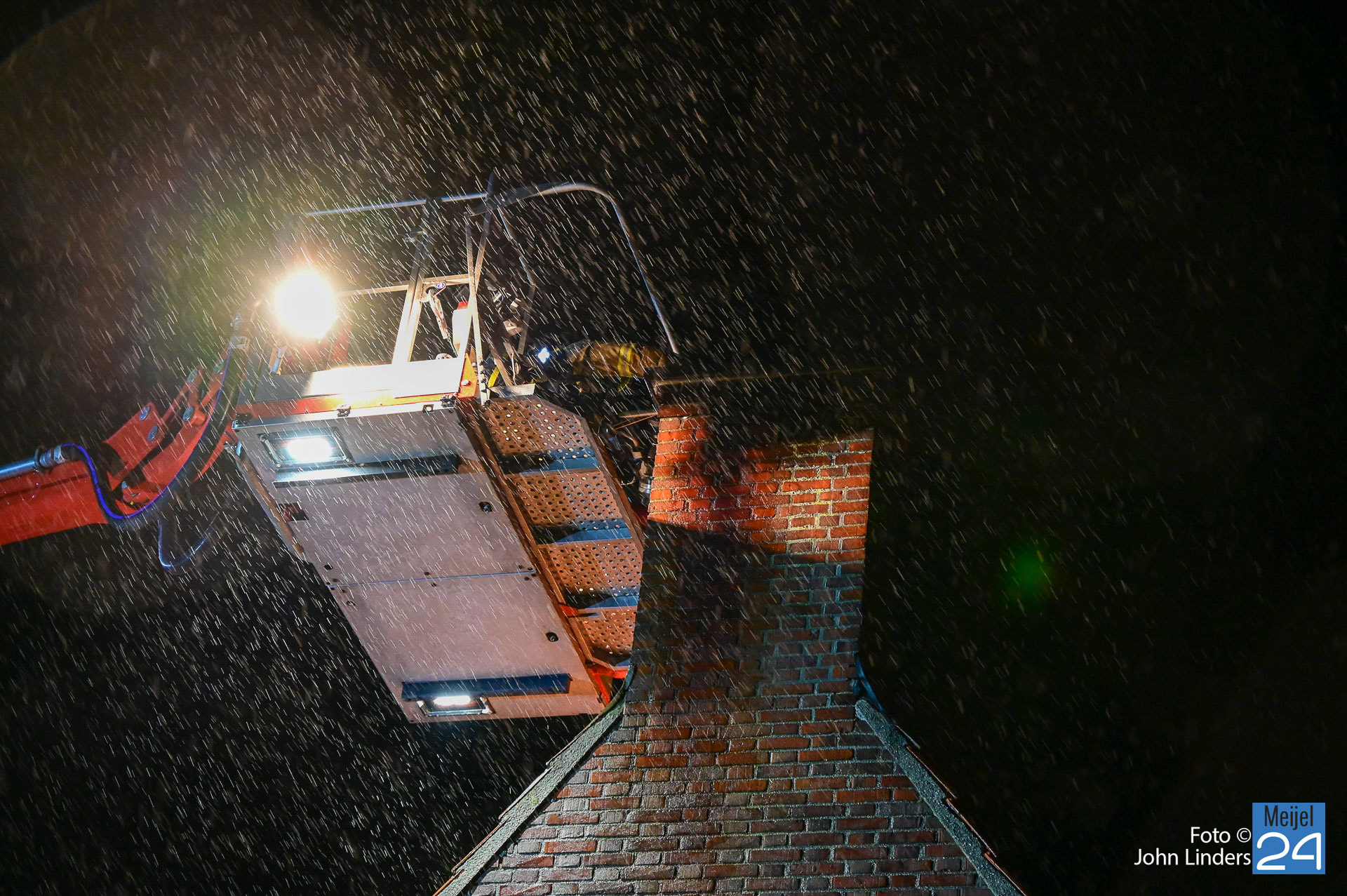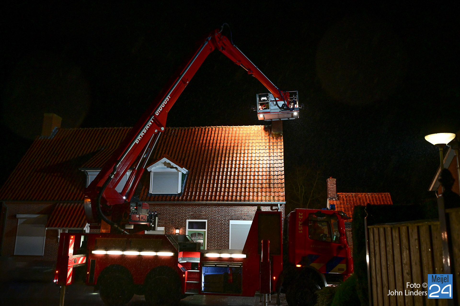 De brandweer van Meijel en Helmond kwamen met een blusvoertuig en hoogwerker met spoed ter plaatse. Vanaf de straat was korte tijd een vonkenregen te zien.