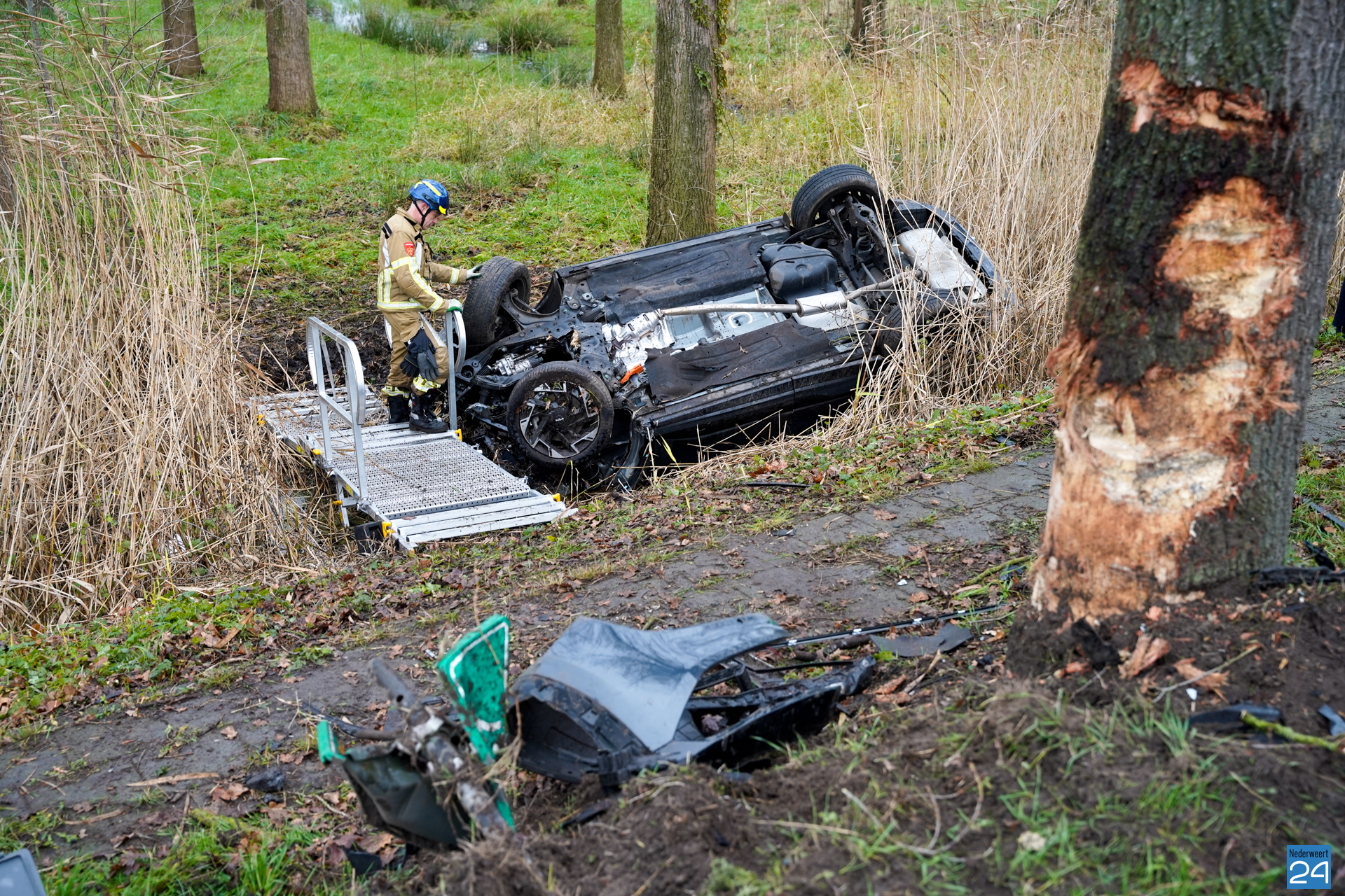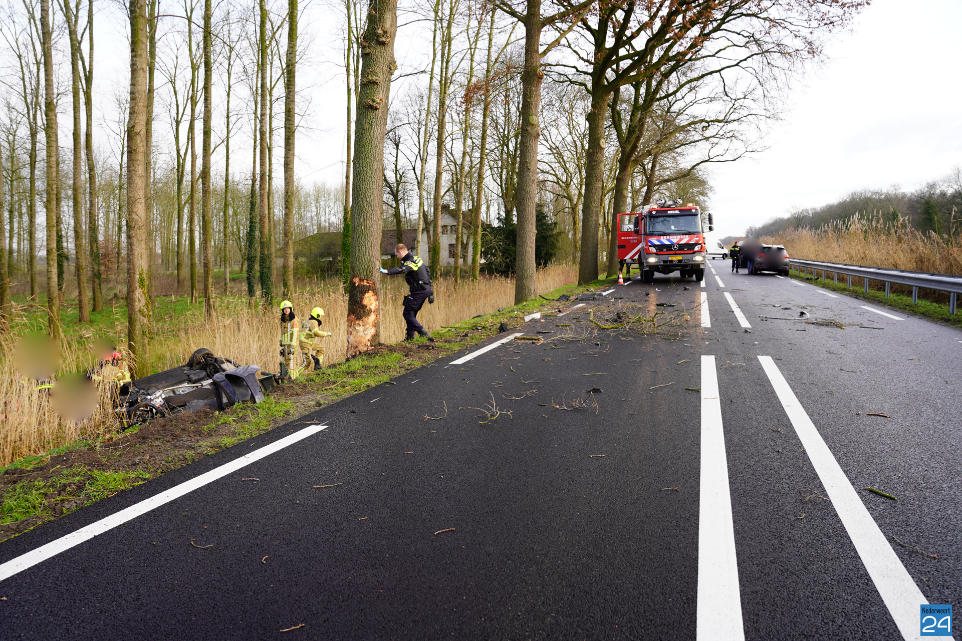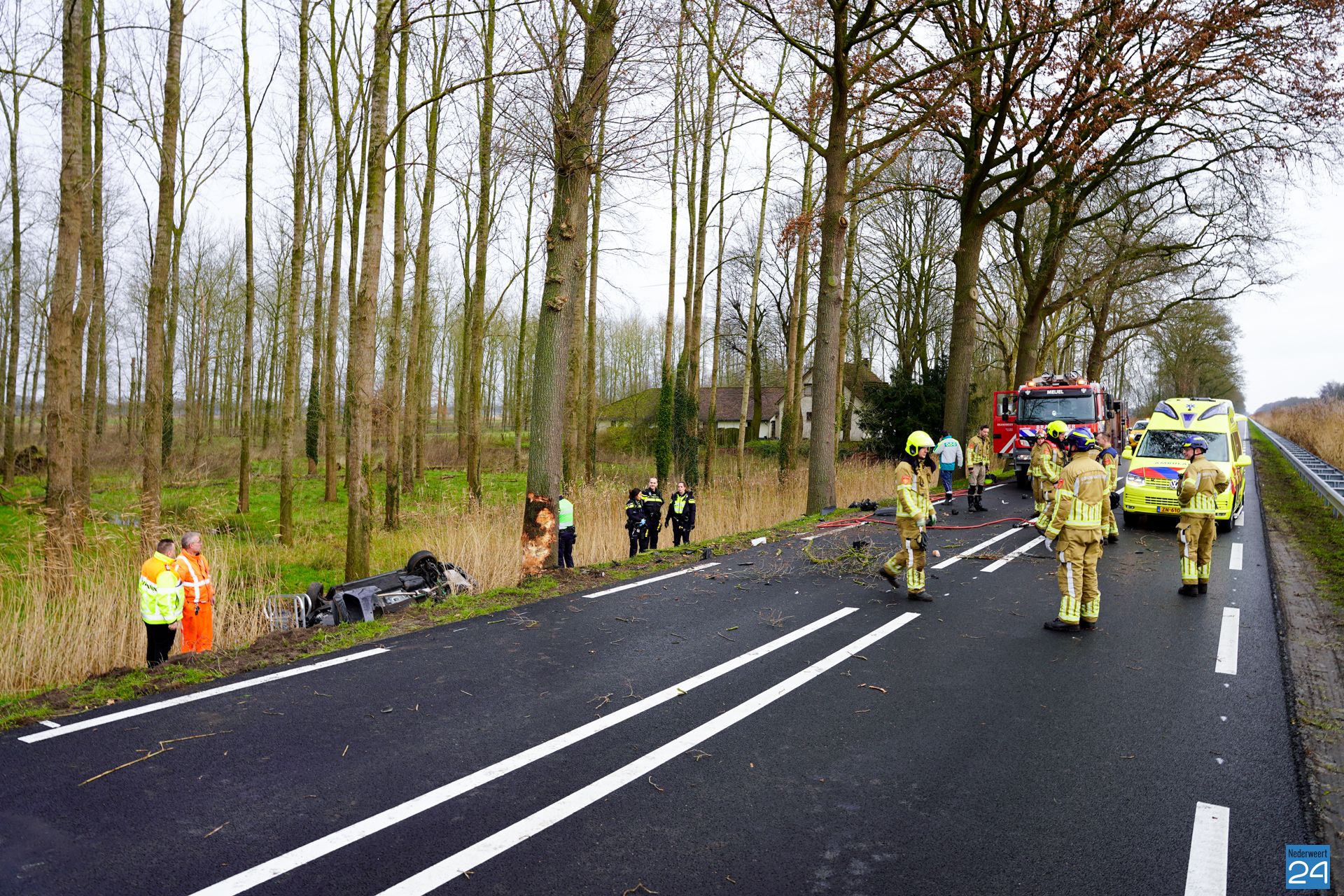 Een personenauto reed vanuit Nederweert richting Meijel. Ter hoogte van de Zwarteboordweg ging het mis en raakte de auto van de weg. Hij raakte een boom en kwam vervolgens in een naastgelegen sloot tot stilstand. Wat de precieze toedracht van het ongeval is, is nog niet bekend.