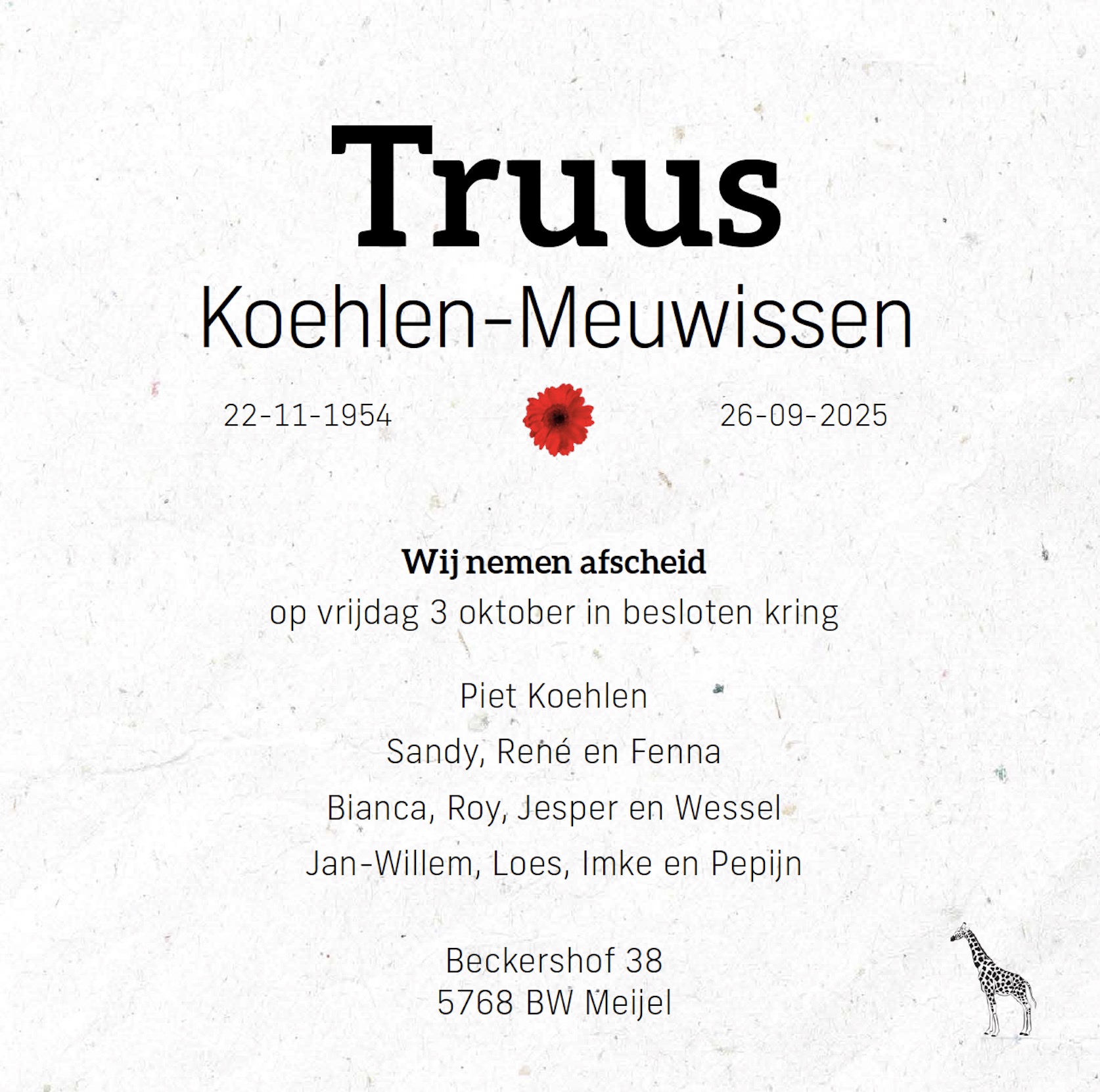 Gecondoleerd met het overlijden van Truus