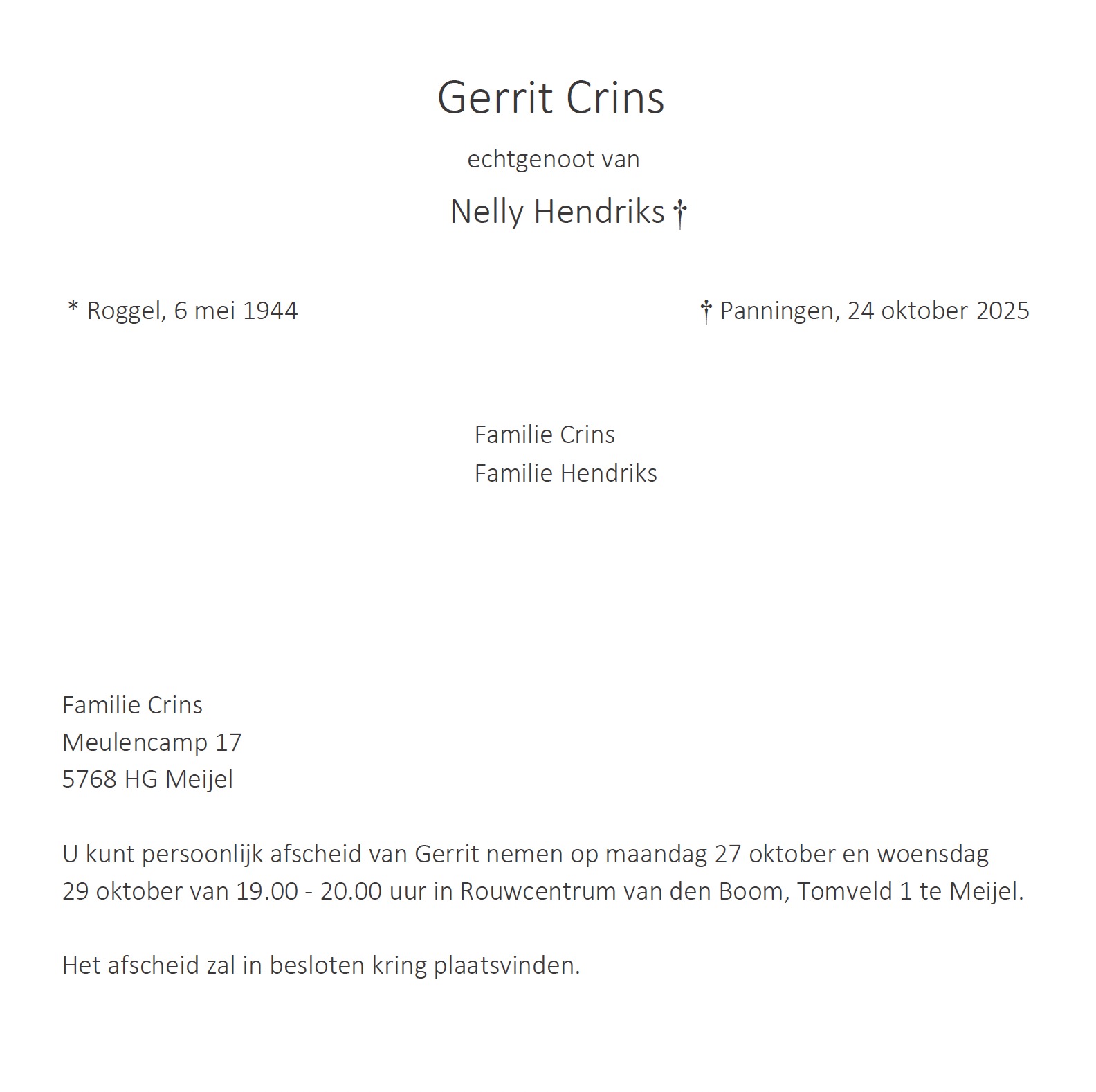 Fam Crins Gecondoleerd veel sterkte Vera Houben Roggel