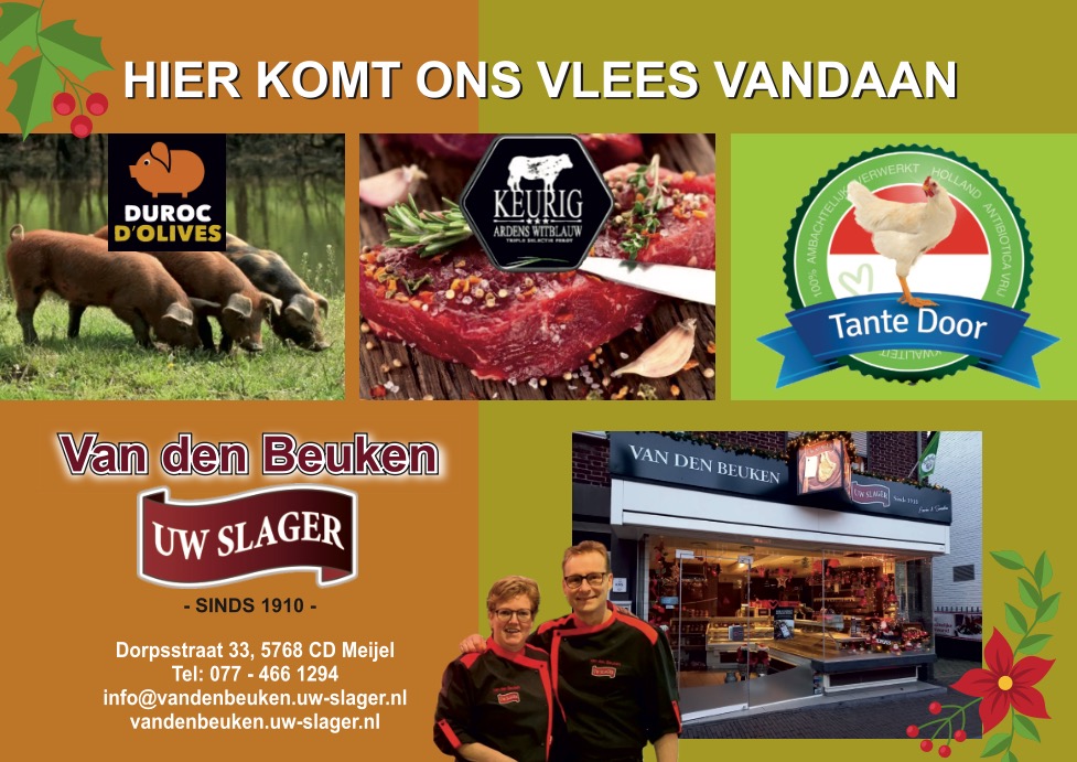 Kerstbestellingen maar ook voor Oud & Nieuw kunnen t/m donderdag 18 december gedaan worden. Na deze datum kunnen we helaas geen nieuwe bestellingen meer aannemen. Maar geen zorgen! Jullie zijn van harte welkom in onze slagerij, waar nog veel lekkers te vinden is.
