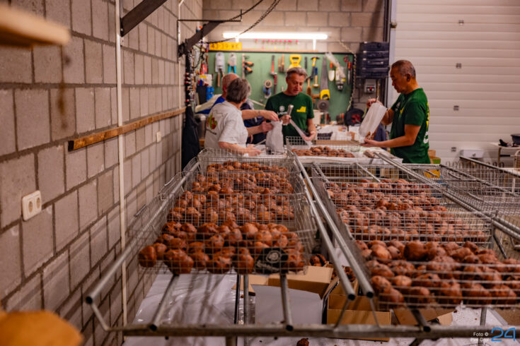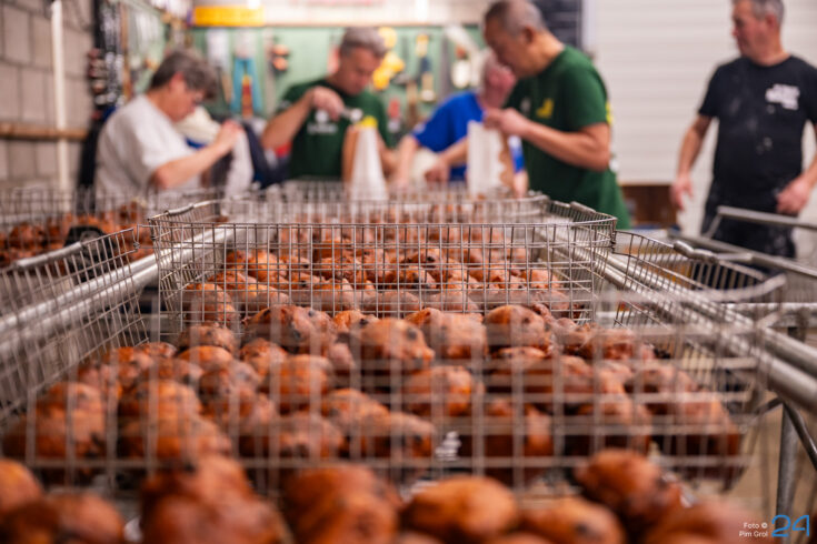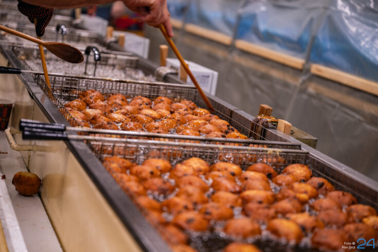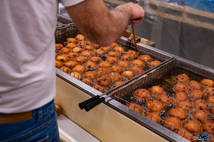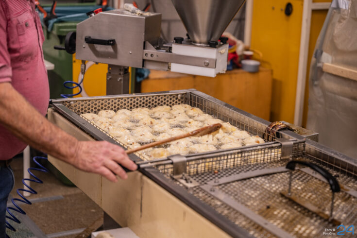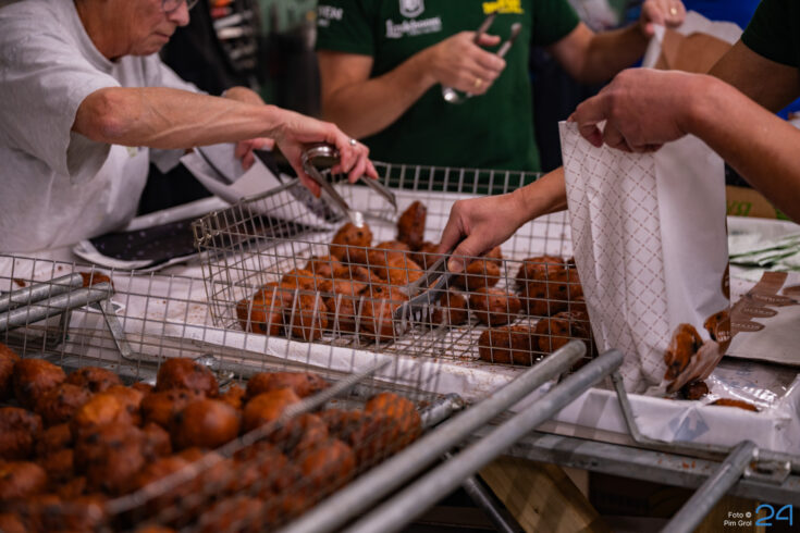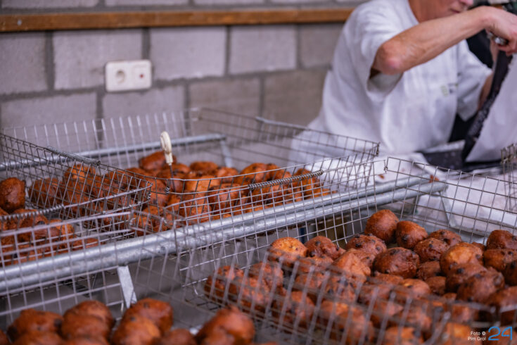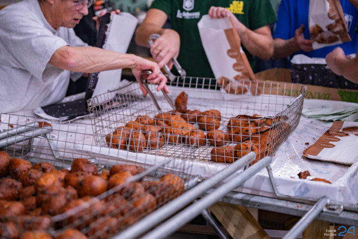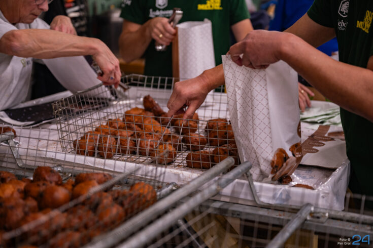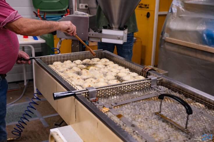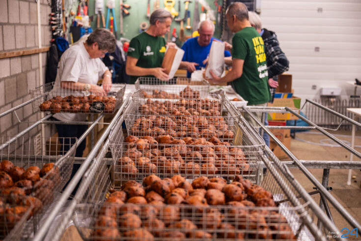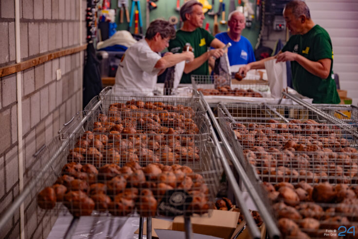 Al in de vroege ochtend wordt het deeg gemaakt en gaat het in porties de friteuse in. Zodra de oliebollen goudbruin zijn, worden ze per tien verpakt en klaargezet voor verkoop. Dit jaar worden er zo’n 15.000 tot 17.000 stuks gebakken!