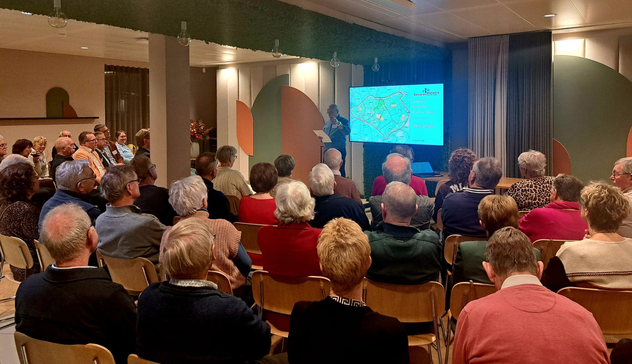 In de inleiding liet het Senioren Netwerk Peel en Maas zien dat we anders tegen de senior moeten gaan aankijken. Niet meer kijken naar de leeftijd, maar kijken naar de levensfase, vitaal of hulpbehoevend. Niet meer denken vóór, maar denken samen mét de ouderen. Het belangrijkste punt uit deze inleiding was duidelijk. Als we in staat zijn met elkaar de vitale fase bij senioren te verlengen, zal dat straks kunnen leiden tot lagere kosten. NU investeren leidt straks tot voordelen.