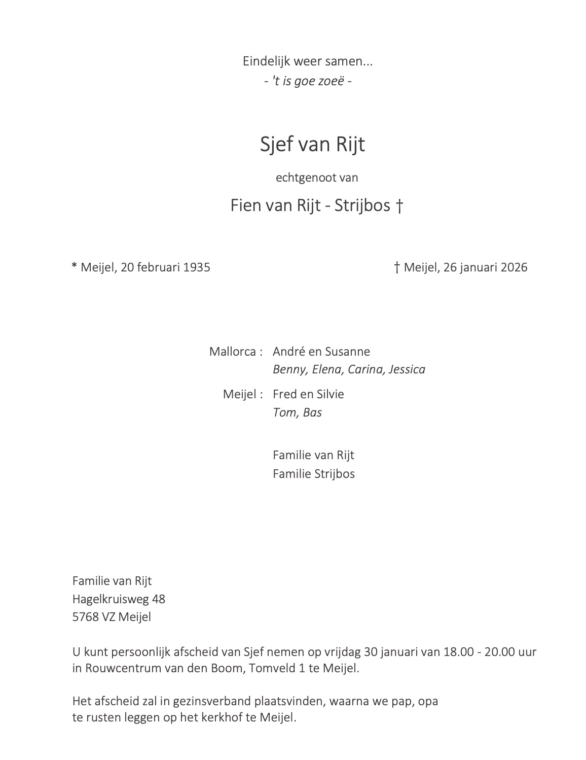 Overlijdensbericht | Sjef van Rijt †