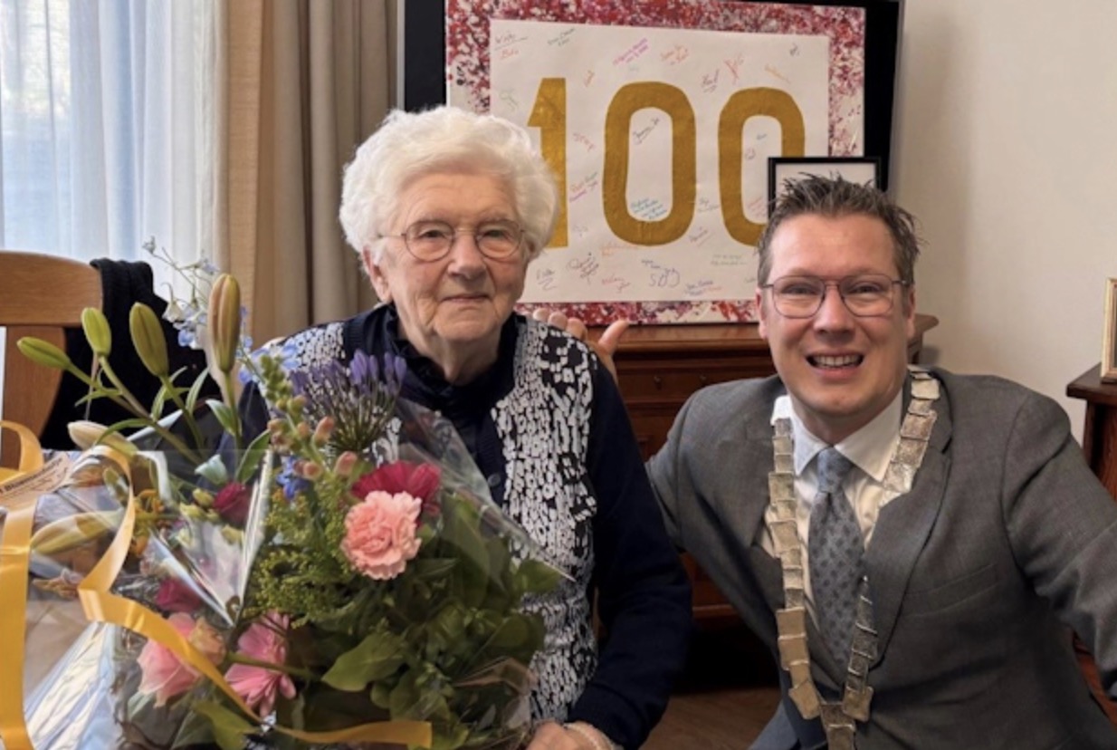 Ter gelegenheid van deze bijzondere mijlpaal brachten burgemeester Bob Vostermans en wethouder Tijs van Lierop op woensdag 4 februari een bezoek aan de jarige om haar persoonlijk te feliciteren namens de gemeente Peel en Maas.