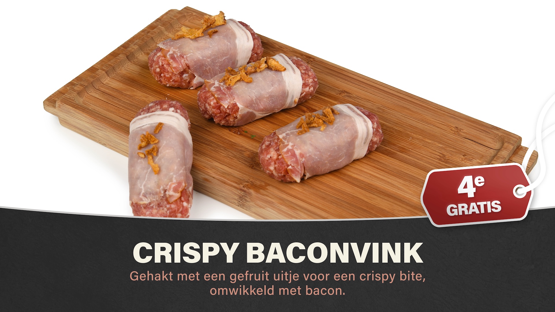 Gehakt met een gefruit uitje voor een crispy bite, omwikkels met spek.